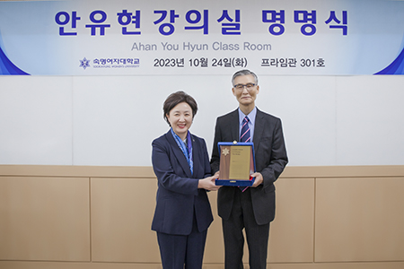 숙명여자대학교(총장 장윤금)가 10월 24일(화) 서울 용산구 숙명여대 제2창학캠퍼스 프라임관 301호에서 ‘안유현 강의실’ 명명식을 개최했다.
