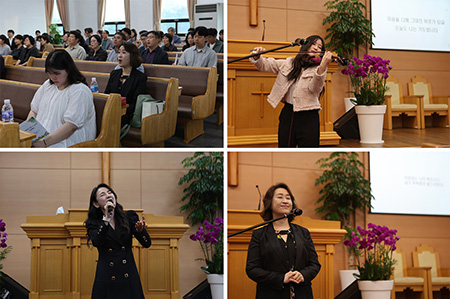 이재훈 학생의 피아노 반주에 맞춰 유에스더 학생이 '기도' 및 '주와 함께 길 가는 것' 축가 및 바이올린 축주를 부르고 연주했다.