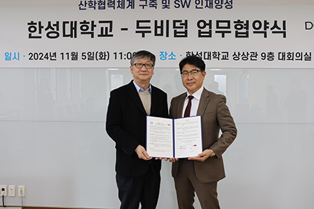 김남윤 한성대 SW중심대학사업단 단장은“이번 산학협력을 통해 학생들은 실무 경험을 쌓고, 기업은 혁신적 연구 성과를 얻는 모범 사례를 만들어 갈 것”이라며“(주)두비덥과의 협력은 더욱 강화된 교육과 실질적인 연구 성과를 이끌어낼 것”이라고 강조했다.