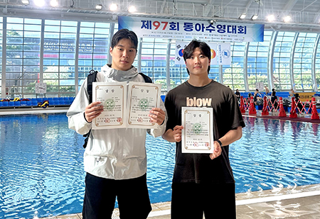 또한 4월 29일부터 5월 3일까지 열린 ‘제97회 동아수영대회’에서 안양대 스포츠단 수영부 박선우(스포츠응용산업학과 2학년) 선수는 자유형 50m에서 2위, 100m에서 4위를 기록했고, 박성철(스포츠응용산업학과 1학년) 선수는 평영 50m와 100m에서 두 종목 모두 2위를 차지하며 좋은 흐름을 이어갔다.