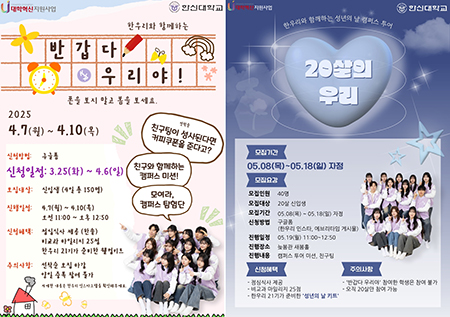 한편 한신대 학생홍보대사 ‘한우리’는 ‘한신대를 알리는 우리들’이라는 의미로 대학 및 입시 홍보, 한국대학생홍보대사연합(ASA-K), SNS 콘텐츠 크리에이터, 캠퍼스 투어, 영상 제작 및 각종 행사 지원 활동을 펼치고 있다. 활동 내용은 공식 인스타그램(@hanwoori.official)을 통해 확인할 수 있다.