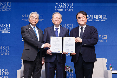연세대학교(총장 윤동섭)는 8월 11일 경영관 용재홀에서 또 럼(To Lam) 베트남 공산당 중앙집행위원회 서기장에게 명예정치학박사 학위를 수여했다.