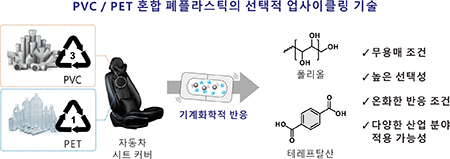 이러한 문제를 해결하고자 연세대학교 화학과 김병수 교수 연구팀은 기계적인 힘을 활용한 기계화학 반응 기반의 친환경 업사이클링 기술을 개발했다. 특히 기존에는 재활용이 거의 불가능했던 PVC(폴리염화비닐)와 PET(폴리에틸렌 테레프탈레이트)가 혼합된 폐플라스틱을 고부가가치 원료로 전환하고, 실제 자동차 시트커버에 공정을 적용해 실증까지 성공하면서 산업적 활용 가능성도 함께 입증했다.