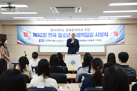 명지대학교(총장 임연수) 문예창작학과는 2025년 9월 11일(목) 오전 11시부터 인문캠퍼스 종합관 7층 세미나실에서 '제32회 전국 청소년 문예백일장 시상식'을 개최했다.