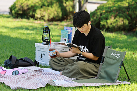 행사에 참여한 박은수(경영학과 4학년) 학생은 “도서관 안에서는 늘 공부하느라 긴장하게 되는데, 이렇게 잔디 위에서 책을 읽으니 훨씬 여유롭고 즐겁다”며 “친구들과 함께 책도 보고 대화도 나눌 수 있어 새로운 경험이 된다”고 소감을 전했다.
