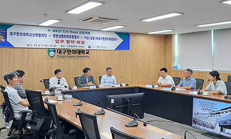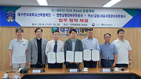 대구한의대학교(총장 변창훈)는 지난 9월 17일 산학협력관 309호 세미나실에서 연변삼행천하유한공사, 카슨(길림)세포자원관리유한공사와 G벨트 확산 및 K-MEDI 실크로드 성장 촉진을 위한 업무협약(MOU)을 체결했다.