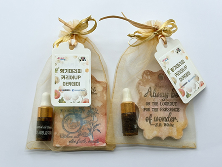 행사 부스에는 교육과정 수료생들이 직접 조향 실습 강사가 되어 2030 청년층은 물론, 다양한 연령대의 시민들을 대상으로 환절기 건강관리를 위한 ▲비염·감기예방 ▲기관지 케어 ▲불면·우울·불안 완화 등을 주제로 아로마 에센셜오일 블랜딩 과정을 지도하며, 석고 방향제를 직접 제작하는 프로그램을 운영했다.