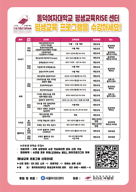더 자세한 내용은 동덕여자대학교 RISE센터 홈페이지(https://rise.dongduk.ac.kr)에서 확인할 수 있다.