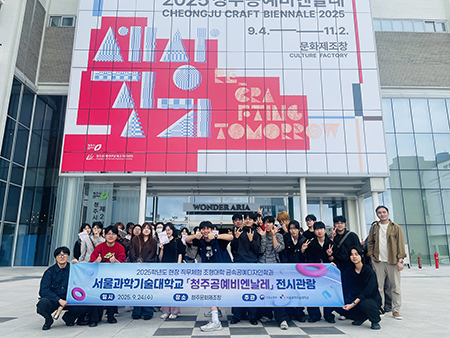 □ 서울과학기술대학교(총장 김동환, 이하 서울과기대) 취업진로본부 대학일자리플러스센터는 지난 9월 12일(목) 도예학과, 24일(수) 금속공예디자인학과 재학생을 대상으로 「2025 청주공예비엔날레」 현장 직무체험 프로그램을 운영했다. 이번 프로그램은 고용노동부가 주관하는 대학 재학생 맞춤형 고용서비스 사업의 일환으로, 전시 현장을 통해 직무와 산업을 이해할 수 있도록 마련됐다.