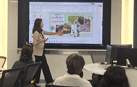 심화 프로그램은 △교과연계(논리수학이랑 놀자, 생각톡톡 마음쑥쑥, 그림책 읽고 신나게 놀아요, 놀GO 말하GO 중국어, 한자 및 중국문화교실, Hello, English!!!) △문화예술(리듬놀이터, 음악으로 자라는 나·너·우리) △체육(신나게 콩! 재밌게 짝! 체육놀이터) △창의과학(그림감상 컴퓨팅 사고 활동, 놀면서 배우는 멀티미디어, 디지털 새싹 탐험대) △인문사회(꿈틀꿈틀 진로탐험대) △학교적응/학생정서(감정과 덕목을 활용한 예술놀이) △기후환경(우리는 지구별탐험대) 등으로 구성돼, 강사들이 직접 체험하며 수업 역량을 기를 수 있도록 했다.