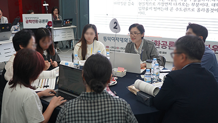 이번 타운홀미팅은 학내 구성원 약 440명(교원 76명, 학생 220명, 직원 76명, 동문 68명)이 참여해 ‘대학의 미래발전 방향과 공학전환 여부’를 둘러싼 주요 쟁점을 심도 깊게 논의하는 자리였다. 효율적인 토론을 위해 110명씩 4회차로 나눠 진행됐다. 한 테이블 당 10명 이내의 구성원이 원탁회의 방식으로 배치돼 그룹토론을 했다. 각 회차는 ▲공론화 추진 경과보고 ▲팩트체크 자료 보고 ▲공학전환 여부 쟁점토론(그룹 및 전체토론) ▲미래토론(그룹토론)으로 구성됐다.