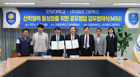 ㈜미라그로박스 정갑수 대표는 "미라그로박스는 기적을 낳는 상자라는 의미이다" 라며, “이번 업무협약식을 계기로 회사의 장점인 세계적으로 잘 형성된 네트워크를 활용해 안양대가 글로벌 대학으로 성장할 수 있도록 호흡을 잘 맞춰가겠다" 라고 말했다.