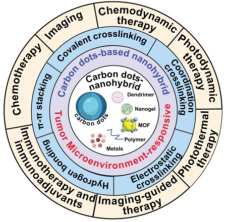CD는 고유한 형광 특성, 인체에 무해한 생체적 합성, 기능화의 용이성을 갖춰 종양 영상 및 치료를 위한 잠재적인 물질로 큰 주목을 받고 있다. 조절가능한 형광과 다양한 작용기를 가진 독특한 구조 덕분에 여러 질환의 진단 및 치료 분야에도 폭넓게 활용되고 있다.