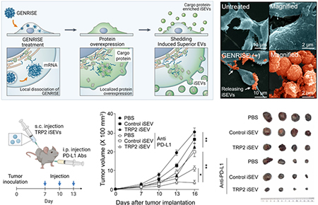 임상 응용 측면에서, 연구팀은 흑색종(Melanoma) 항원 펩타이드(TRP2)를 발현하는 GENRISE로 제조한 iSEV-TRP2를 종양동물 모델에 투여했다. 그 결과, 항원특이적 면역 반응을 통해 종양 성장이 유의하게 억제되었고, 항-PD-L1 면역관문억제제와 병용 시 상승효과가 나타났다.