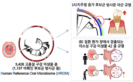 이번에 구축된 HROM은 현재까지 보고된 구강 미생물 유전체 자원 중 가장 포괄적이고 정밀한 데이터베이스로, 특히 2,019종의 미확인 신종과 1,137종의 후보문 방사군(Candidate Phyla Radiation, CPR) 세균을 새롭게 포함하고 있다.
