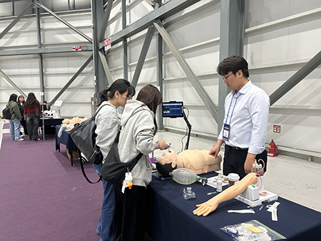 국제대학교 응급구조학과 학생들은 모바일 증강현실(VR)을 활용한 가상 응급환자 처치 체험, 웨어러블 CPR 밴드 실습 등 다양한 프로그램에 참여하며 높은 관심을 보였다. 이를 통해 학생들은 교과 과정에서 배운 이론을 실제 장비와 연계해 체험하며 실질적인 현장 대응 능력을 키울 수 있었다.