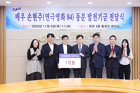 박상규 총장은 “손현주 동문님은 대한민국을 대표하는 연기자이자 자랑스러운 중앙인”이라며, “이번 기부는 후배들에게 귀감이 될 뿐 아니라, 연극영화학과의 세계적 도약을 위한 소중한 밑거름이 될 것”이라고 감사의 뜻을 전했다.
