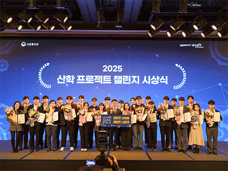 한국공학대학교(총장 황수성) IT반도체융합공학과 대학원생 지용경, 이주훈 학생이 13일(목) 서울 JW 메리어트 동대문 스퀘어에서 열린 ‘2025 산학프로젝트 챌린지’ 시상식에서 산업통상자원부 장관상을 수상했다.
