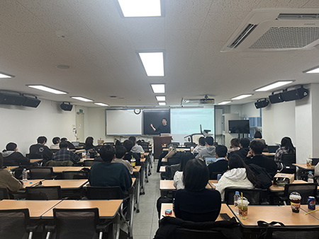 스마트팜 기업 견학은 경기도 용인 소재 농업회사법인 원에이커팜 주식회사에서 진행됐다. 이현재 대표와 정명환 이사는 스마트팜 산업의 구조, 수직농장 운영 방식, 자동화·환경제어기술 등 스마트농업 분야의 전반을 학생들에게 설명하고, 현장에서 마주할 수 있는 실제 사례를 중심으로 질의응답을 이어갔다.