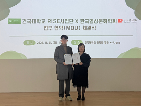 한편, 건국대 RISE사업단 미래키움운영센터는 지난 11월 21일 한국영상문화학회와 업무협약(MOU)을 체결하며 미래세대 교육 기반을 강화했다.