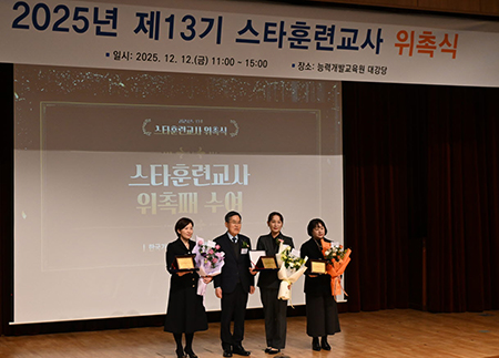한국기술교육대학교 능력개발교육원은 지난 12일(금) 대강당에서 100여명의 직업훈련교사 등이 참여한 가운데 ‘2025년도 제13기 스타훈련교사 위촉식’을 개최했다.