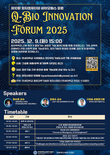 올해 포럼은 연세대 융합과학기술원 양자사업단과 서울시 RISE사업을 수행하는 연세대 RISE-Y사업단이 공동 주관했으며, 양자정보기술 분야의 최신 동향과 양자컴퓨터의 응용 가능성을 공유해 국내 양자 생태계 확산을 도모하는 데 목적을 뒀다.