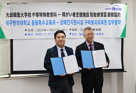 오사카공립대학 문화자원학과 스가와라 학장은 “이번 교류를 계기로 대구한의대학교 중등특수교육과와 공동연구와 학문 교류, 교수·학생 교류 프로그램을 지속적으로 확대하길 기대한다”며 “한국의 특수교육 정책과 전문적 지원 체계에서 일본이 참고할 만한 부분이 많다”고 평가했다.