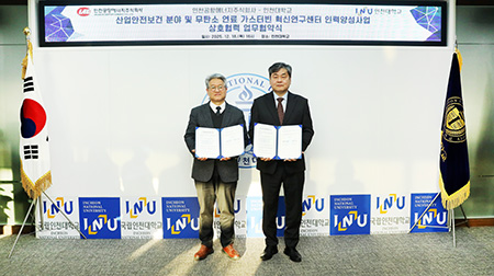❍ 인천대학교(총장 이인재)와 인천공항에너지(주)(사장 이경용)는 2025년 12월 18일(목), 인천대학교 송도캠퍼스 대학 본부에서 산업재해 예방 및 산업현장 안전문화 정착 등 상호협력을 위한 업무협약과 무탄소 연료 가스터빈 분야 연구개발 및 인력양성을 위한 업무협약을 체결했다.