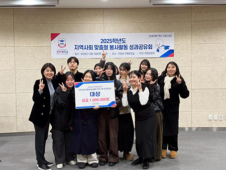 경복대학교 유아교육학과 전공동아리 ‘아해다솜’이 지난 12월 18일(목), 16개 봉사동아리가 참여한 2025학년도 혁신지원사업 '지역사회 맞춤형 봉사활동 성과공유회'에서 2024년에 이어 2년 연속 대상을 받았다.