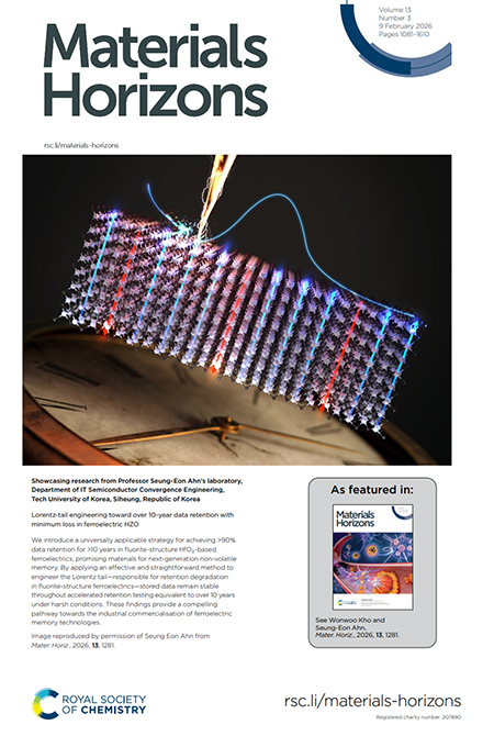 이번 연구 성과는 재료과학 분야의 저명 학술지 머티리얼즈 호라이즌스(Materials Horizons, IF 10.7) 2월 9일 자 표지논문으로 선정됐다. “Lorentz-tail engineering toward over 10-year data retention with minimum loss in ferroelectric HZO”라는 제목으로 게재된 이번 논문에는 한국공학대 박사과정 고원우 학생이 제1저자로 참여했다.