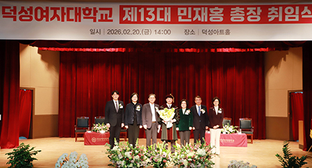 덕성여자대학교(총장 민재홍)는 20일(금) 오후 2시 덕성아트홀에서 ‘제13대 민재홍 총장 취임식’을 개최하고 행사를 성료했다. 취임식에는 학교법인 덕성학원 이종구 이사장과 이사진 및 덕성학원 산하기관장을 비롯해 이화여대, 성신여대, 서울여대 총장 등 내외빈과, 동문, 학생, 교직원 등 구성원들이 참석해 새 총장의 출발을 함께 축하했다.