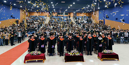이날 입학식은 학사보고, 축사, 신입생 선서, 장학 증서 수여, 유길상 총장의 입학 식사, 신입생 대표의 입학 소감문, 축하 공연, 교가 제창 등의 순으로 진행됐다.