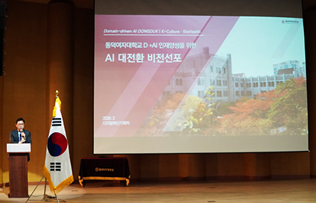 동덕여자대학교(총장 김명애)가 2월 25일 오후 교내 율동기념음악관 국제회의실에서 'AI 대전환 비전 선포식'을 개최했다.