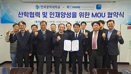 한국공학대학교(총장 황수성)는 2월 26일 경기도 군포시에 위치한 리모트솔루션㈜(대표이사 신홍범) 본사 대회의실에서 산학협력 및 인재양성을 위한 업무협약(MOU)을 체결했다.