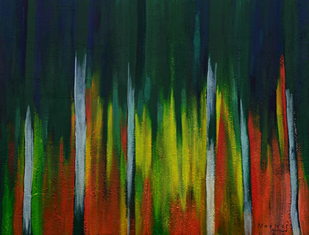 특히 화면을 채우는 색채의 울림과 빛의 흐름은 자연이 지닌 에너지와 시간의 흐름을 드러내며, 관람자에게 자연 속에서 느껴지는 평온함과 치유의 감각을 전달한다. 나무와 숲이 만들어내는 깊이와 리듬은 자연의 생명성과 지속성을 상징하며, 이러한 풍경은 삶의 여정과 희망을 은유적으로 보여준다.