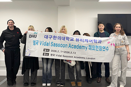 글로컬대학 대구한의대학교(총장 변창훈) 뷰티케어학과(학과장 권애란)는 재학생들의 글로벌 역량 강화를 위해 2026년 2월 1일부터 2월 13일까지 영국 런던에 위치한 비달사순 아카데미(Vidal Sassoon Academy) 본교에서 해외연수 프로그램을 실시했다.