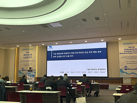서울시립대학교(총장 원용걸) 일반대학원 환경공학과 대학원생 연구팀이 ‘Water Korea 대학원생 논문 공모전’에서 우수한 연구 성과를 인정받아 최우수상을 수상하였다.
