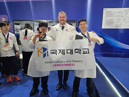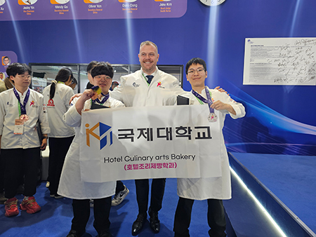 국제대학교(총장 김동춘) 호텔조리제빵학과 학생이 지난 3월30일부터 4월 2일까지 중국 상하이에서 개최한 ‘2026 HOTELEX 중국 국제 영셰프 요리대회 (RISING STAR 2026 Hotelex China International Young Chefs Competition)’에서 금메달 등 4개의 메달을 획득하는 쾌거를 이뤘다.
