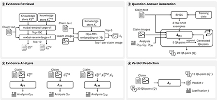 이번 대회는 웹에서 수집된 이미지와 텍스트 기반 주장에 대한 진위를 판별하는 멀티모달 팩트체킹 문제를 다뤘다. 박건우 교수 연구팀은 시각·언어 모델 기반의 다중 에이전트 협업 시스템 ‘VILLAIN’을 개발해 근거 품질과 검증 정확도 등 주요 평가 지표에서 1위를 기록했다.