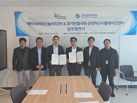 지난 4월 2일 한국공학대 제2캠퍼스인 TU리서치파크 산학협력관(시흥시 엠티브이북로 65)에서 열린 이번 협약식에는 김성용 공정혁신시뮬레이션센터장과 정성원 메타리버테크놀러지(주) 대표이사를 포함한 관계자들이 참석했다.