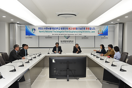 대구한의대학교(총장 변창훈)는 지난 2일 라오스 수파누봉국립대학교 부총장을 비롯한 방문단이 본교를 찾아 한국어 교육 확대와 양 대학 간 협력 강화를 위한 회의를 개최했다고 밝혔다.