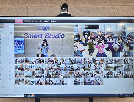 첫 프로그램은 ‘스마트 노래교실’로 진행됐다. 허소영, 하창석 강사의 진행 아래 지역 내 일부 경로당을 제외한 대부분의 경로당이 화상 시스템으로 연결됐으며, 약 290여 명의 어르신이 참여해 높은 호응을 얻었다. 어르신들은 대형 스크린을 통해 서로 안부를 나누고 함께 노래를 부르며 정서적 교류와 공동체 유대감을 형성하는 시간을 가졌다.