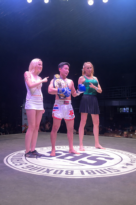 국제대학교(총장 김동춘) 스포츠학부 무도전공 현이준 선수가 4월 18일 태국 신비복싱스타디움에서 열린 무에타이 슈퍼라이트급 경기에서 세계챔피언에 올랐다.
