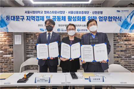 서울시립대학교 캠퍼스타운사업단 – 서울신용보증재단 – 신한은행, 지역경제활성화를 위한 MOU체결