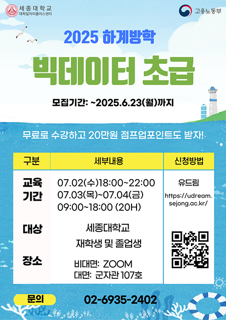 세종대 대학일자리플러스센터, 2025 하계방학 빅데이터 분석 취업실무과정 운영