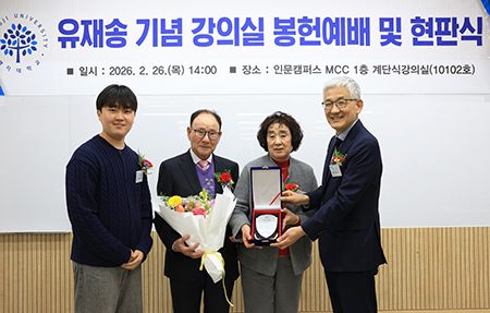 명지대, ‘유재송 동문 기념 강의실’ 봉헌예배 및 현판식 개최