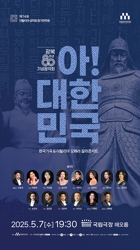 안양대 음악학과 오동국 교수 회장 · 예술감독 , 이탈리아성악회 광복 80 주년 기념음악회 ‘ 아 ! 대한민국 ’ 5 월 7 일 개최