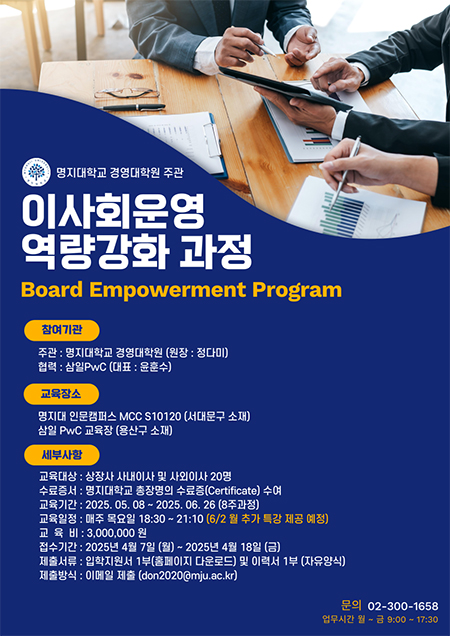 명지대학교 경영대학원, 이사회 운영 역량 강화를 위한 교육과정 개설
