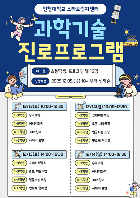 인천대학교, 스타브릿지센터 과학기술 프로그램 모집 안내