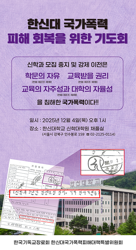 한신대·한국기독교장로회총회, ‘국가폭력 피해 회복을 위한 기도회’ 및 기자회견 진행